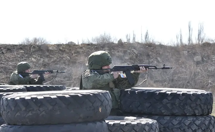 Во время одной из тренировок военнослужащие получили задачу занять опорный пункт условного противника. Работая в тактических группах — двойках и тройках — они отработали перемещение и манёвры на поле боя.