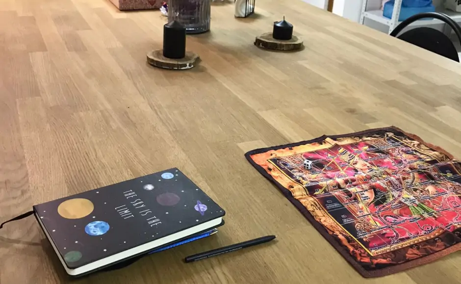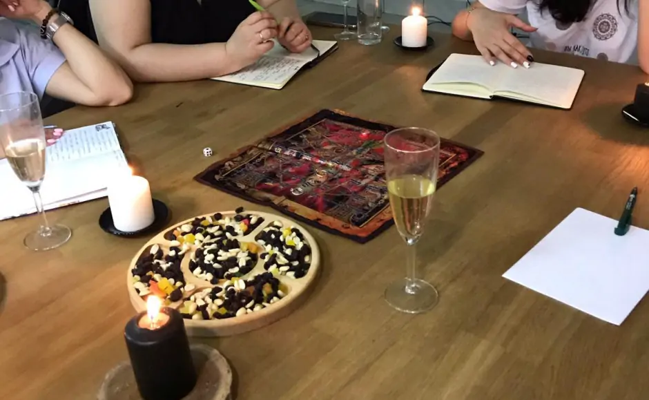 — Также обязательно нужно взять ручку и записать ваш путь. Запишите сам запрос, потом на какие клетки вы попадали, какие чувства и мысли у вас возникали, хотя бы тезисно. Когда Лила закончится и всё уложится в голове, обязательно перечитайте ваши записи. Вы посмотрите более трезвым взглядом. Придут озарения — вот здесь уже включается психология. Магия, сакральность, волшебство момента закончилось на поле. Когда вы уже вышли из игры и в своей повседневной жизни читаете записи, уже идёт психологическая проработка. С психологом или самостоятельная.