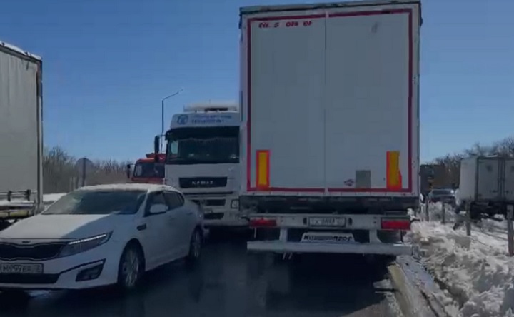 Водители утверждают, что уже много лет подряд при непогоде и снегопадах ситуация повторяется по одному сценарию: фуры застревают на подъёме и перегораживают трассу. 30 марта ситуация повторилась.
