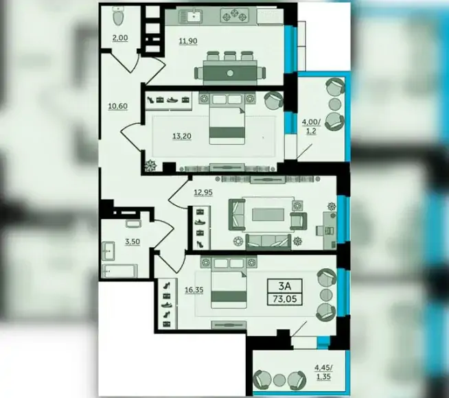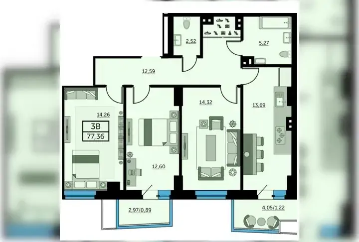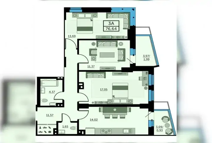 Трёхкомнатная квартира (3А) (литер7)