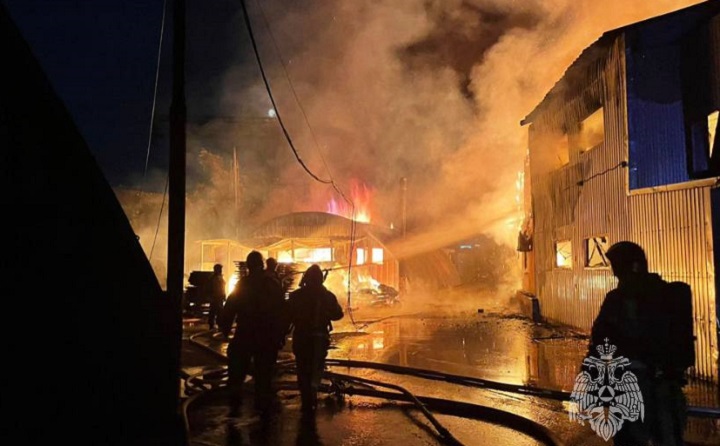 Как уточнили в МЧС, на площади 300 квадратных метров горят складские помещения и на 200 квадратных метров — поддоны.