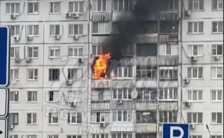 Площадь пожара устанавливается. Известно, что квартира загорелась на шестом этаже.
