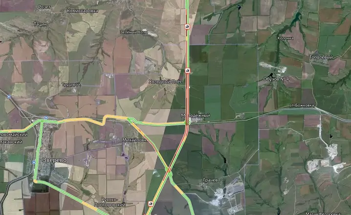 В Telegram-канале «трасса М-4 чат» водители, застрявшие в пробке, сообщают, что на 967-м километре М4 «Дон» в Красносулинском районе фура съехала с дороги. Движение на данном участке возможно только по одной полосе.