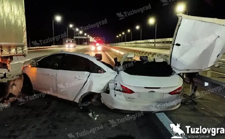 В Ростовской области на новочеркасской развязке трассы М4 «Дон» минувшей ночью произошло ДТП, в котором чудом удалось избежать жертв. Как пишет издание «Тузловград», водитель тягача Foton аварийно остановился на дороге, так как после одного и торможений у него заклинило тормозные колодки на одном из колёс. И буквально сразу же в фуру сзади врезался автомобиль Ford Focus.