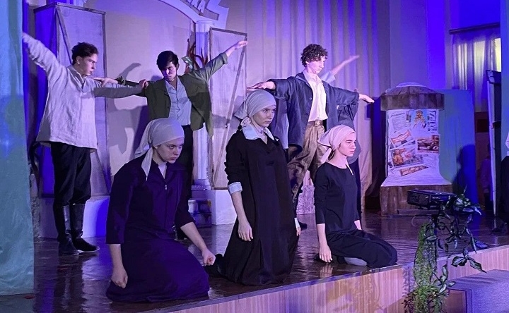Участники детского театра «Первый ряд», состоящего из учеников средней школы №1 Новочеркасска, представили патриотический спектакль под названием «Мы были…». Постановка посвящена 80-летию основания «Молодой гвардии» — подпольной комсомольской организации, боровшейся с нацистскими захватчиками в годы Великой Отечественной войны в городе Краснодоне Ворошиловградской области.
