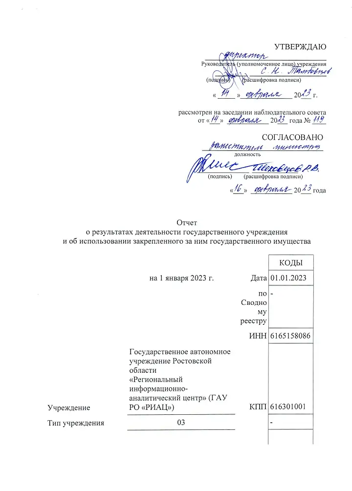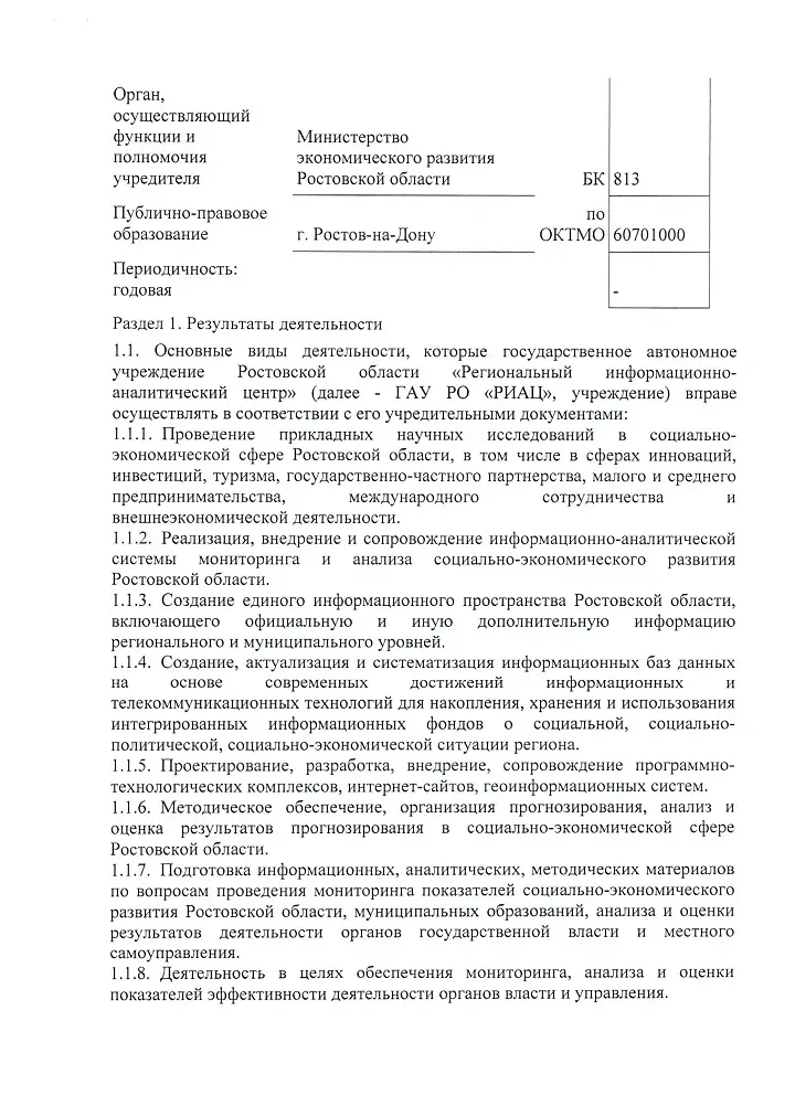 80,48₽О результатах деятельности государственного автономного учреждения Ростовской области "Региональный информационно-аналитический центр"