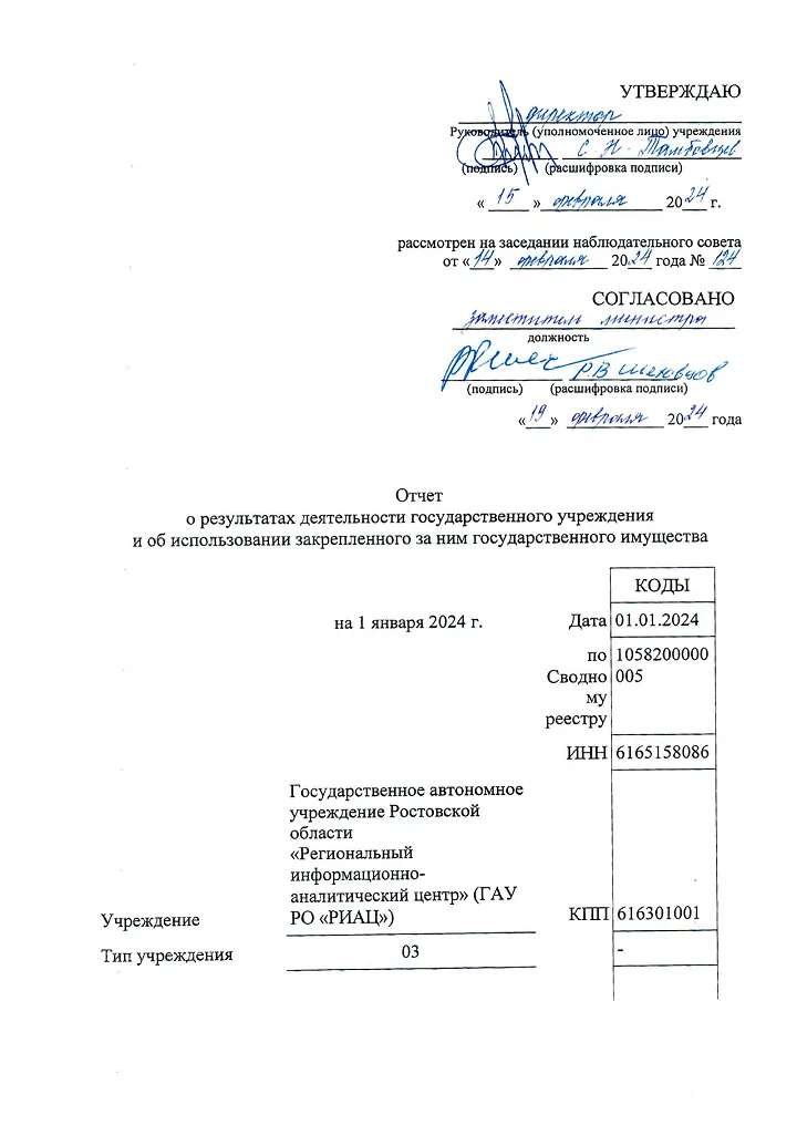 79,50₽О результатах деятельности государственного автономного учреждения Ростовской области "Региональный информационно-аналитический центр"
