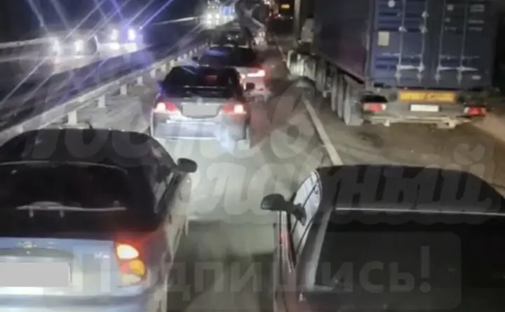 По словам очевидцев, на этом участке произошла авария с большегрузами. Одна из фур задымилась, другие водители помогли потушить её.