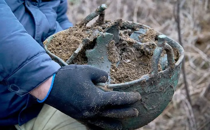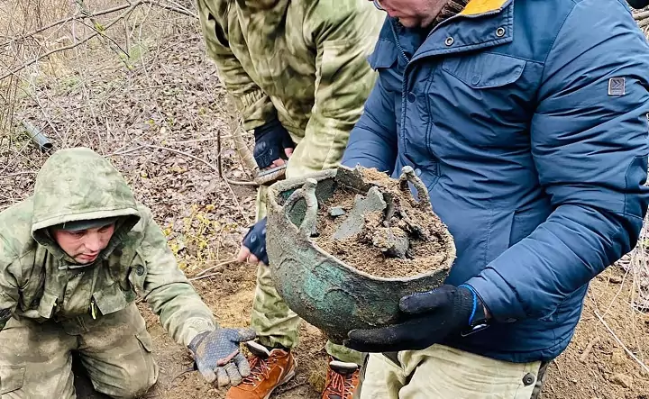В Ростовской области во время раскопок поисковики обнаружили ритуальный жертвенный котёл скифов. Об этом на странице в Facebook сообщил руководитель поискового объединения «Миус-Фронт» Андрей Кудряков.