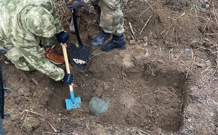 Уникальный артефакт нашли во время исследования немецкого батальонного пункта рядом с хутором Недвиговка. Чтобы достать его, как пишет Кудряков, были приглашены археологи и специалисты из департамента по защите культурного наследия.