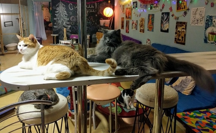 Кафе «КОТЭдж» открылось в Ростове в 2016 году. Им владеют мать и дочь — Алёна и Наталья Кравцовы. В пандемию заведение постепенно превратилось также в приют для бездомных и больных животных, которым Кравцовы ищут добрых заботливых хозяев.