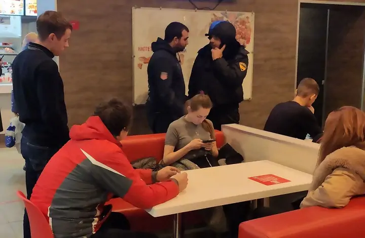 Добравшись до кассы, они попытались сделать заказ, но сотрудница ресторана предупредила коллег, что коды никто из компании не показал. Обслуживать их отказались. Тогда выяснилось, что у одной девушки QR-код всё же имелся, она его показала и продиктовала заказ, пока её друзья толпились у кассы и ругались с менеджером ресторана. Заказ свой они всё же получили и уселись за столик есть, но минут 7-10 спустя приехала охрана.