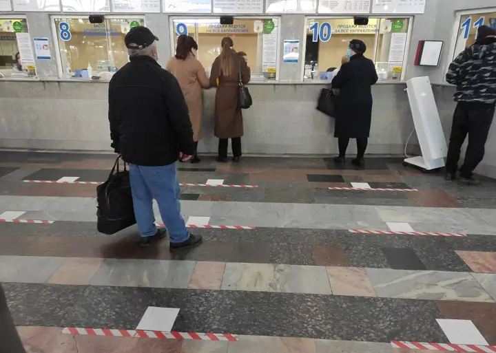 Обязанность администрации вокзала — не пускать в здание людей без правильно надетых масок, контролировать соблюдение социальной дистанции в очереди у касс или в зале ожидания, организовать термометрический контроль, обеспечить наличие средств дезинфекции.
