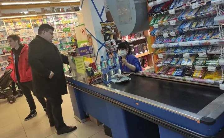 В небольшом торговом центре неподалёку тоже нарушений хватало. Проверить QR-код на входе у посетителей никто и не пытался. В супермаркете на первом этаже кассир даже не попросила покупателя надеть маску. Он преспокойно расплатился и ушёл с тем же видом барина в пальто с каракулевым воротником, с которым до этого прошёлся по всему магазину, так и не озаботившись наличием маски. Как пояснили инспекторы, в такой ситуации наказать могут и сам магазин, и кассира.