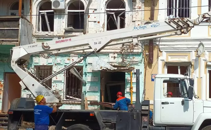 По его словам, на месте падения беспилотников по-прежнему ведутся работы: убирают побитые стёкла, вынимают повреждённые оконные рамы и так далее.
