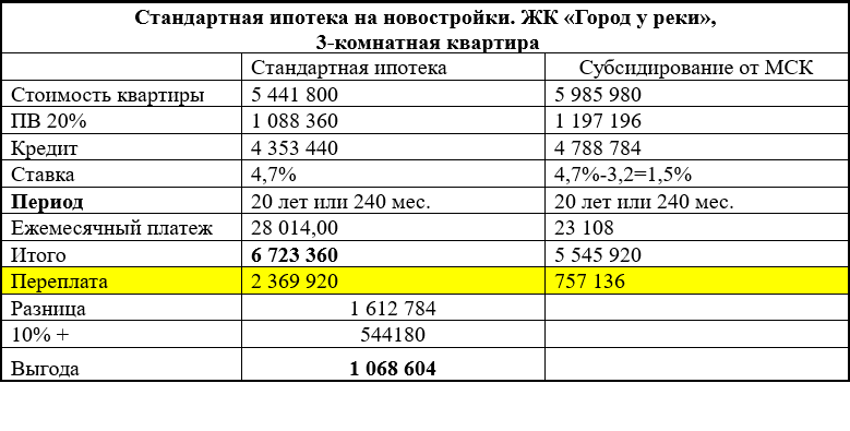 Выгода при покупке в ипотеку трёхкомнатной квартиры в ЖК «Город у реки»: