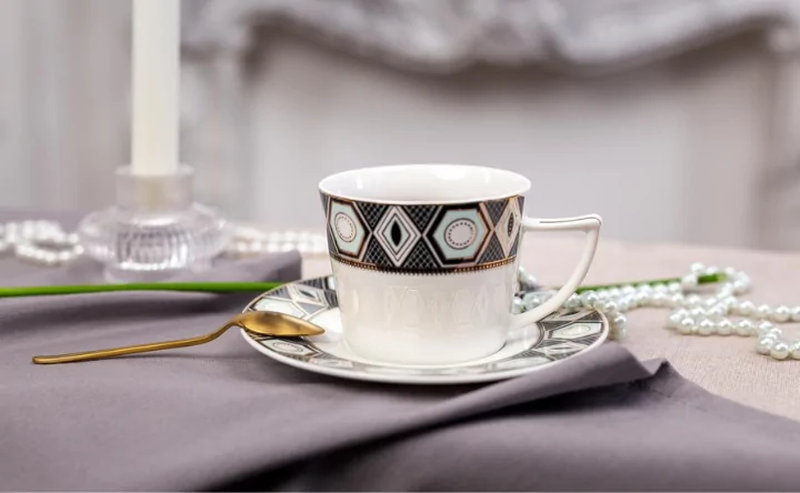 Следующий пункт — посуда для сервировки. На выбор покупателей — изящные наборы для чая и кофе из фарфора, блюда и салатники из опалового стекла и керамики, тарелки, бульонницы, креманки и многое другое. Например, очень необычно и стильно на столе будет смотреться коллекция «Блэк джинс» в глубоком чёрно-синем цвете.