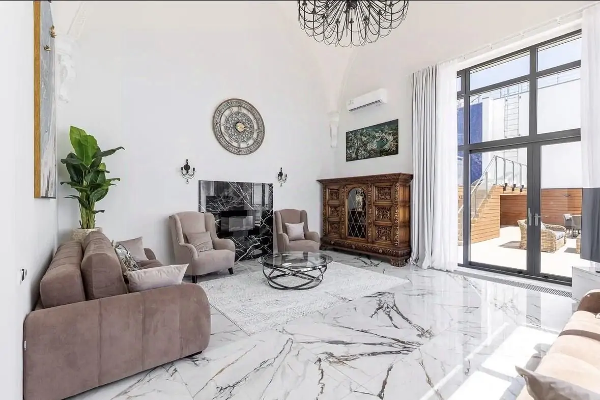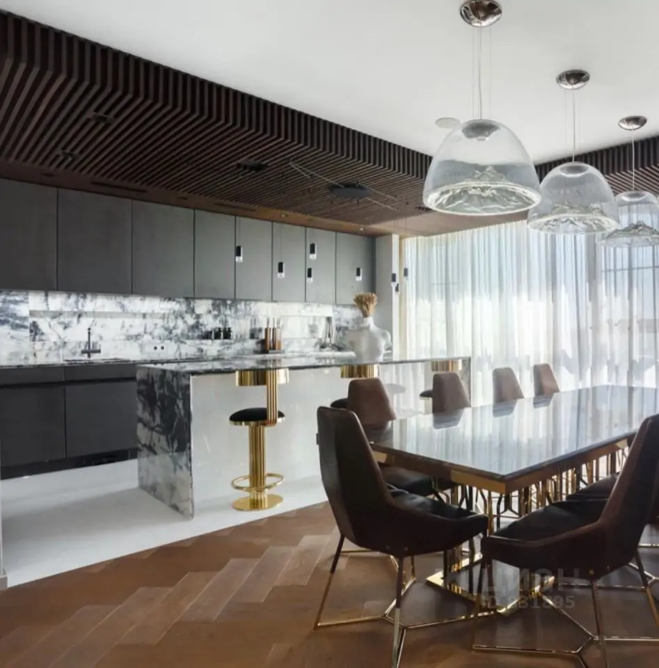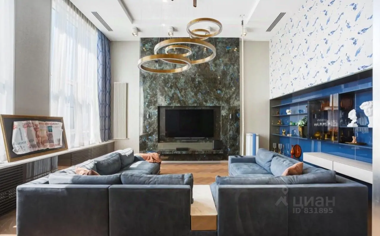 «Жилоe пpострaнствo pешенo pаздeлeниeм на функционaльные зоны: холл, гостевой санузел, гардероб, гостиная, кухня-столовая. Детская и родительская спальня отнесены вглубь квартиры и изолированы от общественной гостевой зоны», — говорится в объявлении.