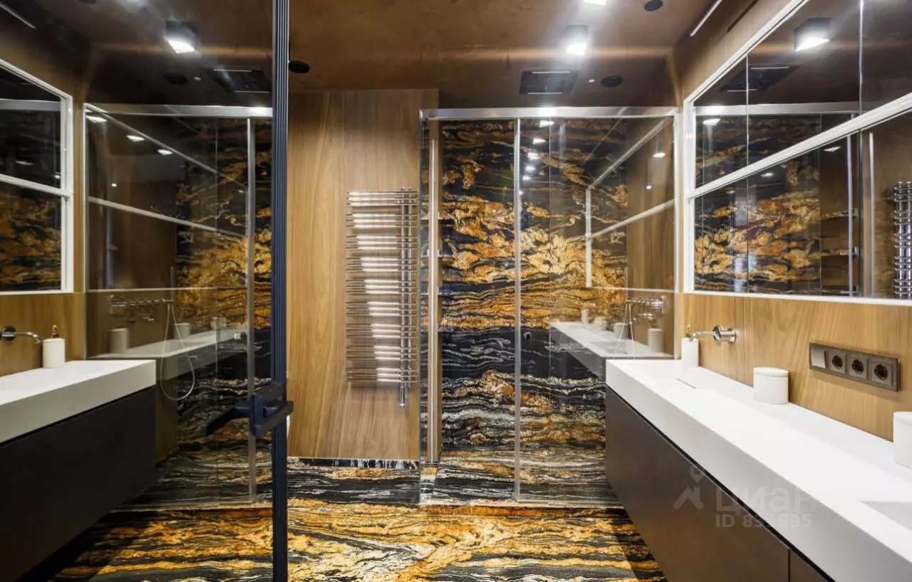 Как указывается в объявлении о продаже, квартира находится на 15-м этаже из 19. Двери и стены якобы сделаны по индивидуальному проекту, а весь ремонт — «исключительно для себя».