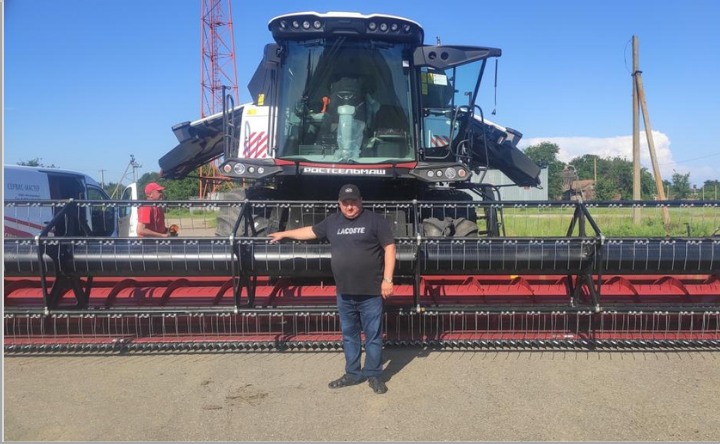 Фермер приобрёл на заёмные деньги два комбайна и трактор производства завода «Ростсельмаш». Как рассказал Сергей Тарасенко, на новую технику поставили подруливающее устройство, и теперь весь процесс уборки автоматизирован.