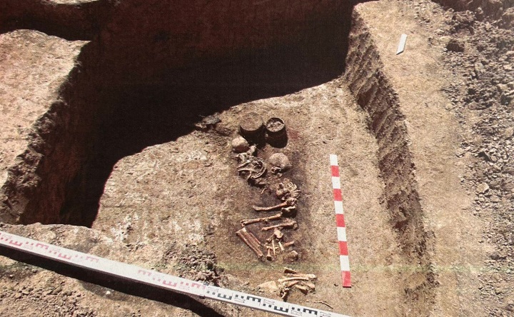 «При исследовании погребальных ям найдены инвентарные находки: отлично сохранившийся лепной плоскодонный горшок с орнаментом, курильница на четырёх крестообразных ножках, бронзовые бусы и другие украшения, костяные кольца, навершие булавы из полированного камня», — рассказали в комитете.