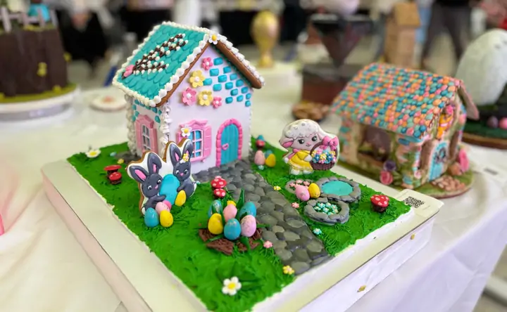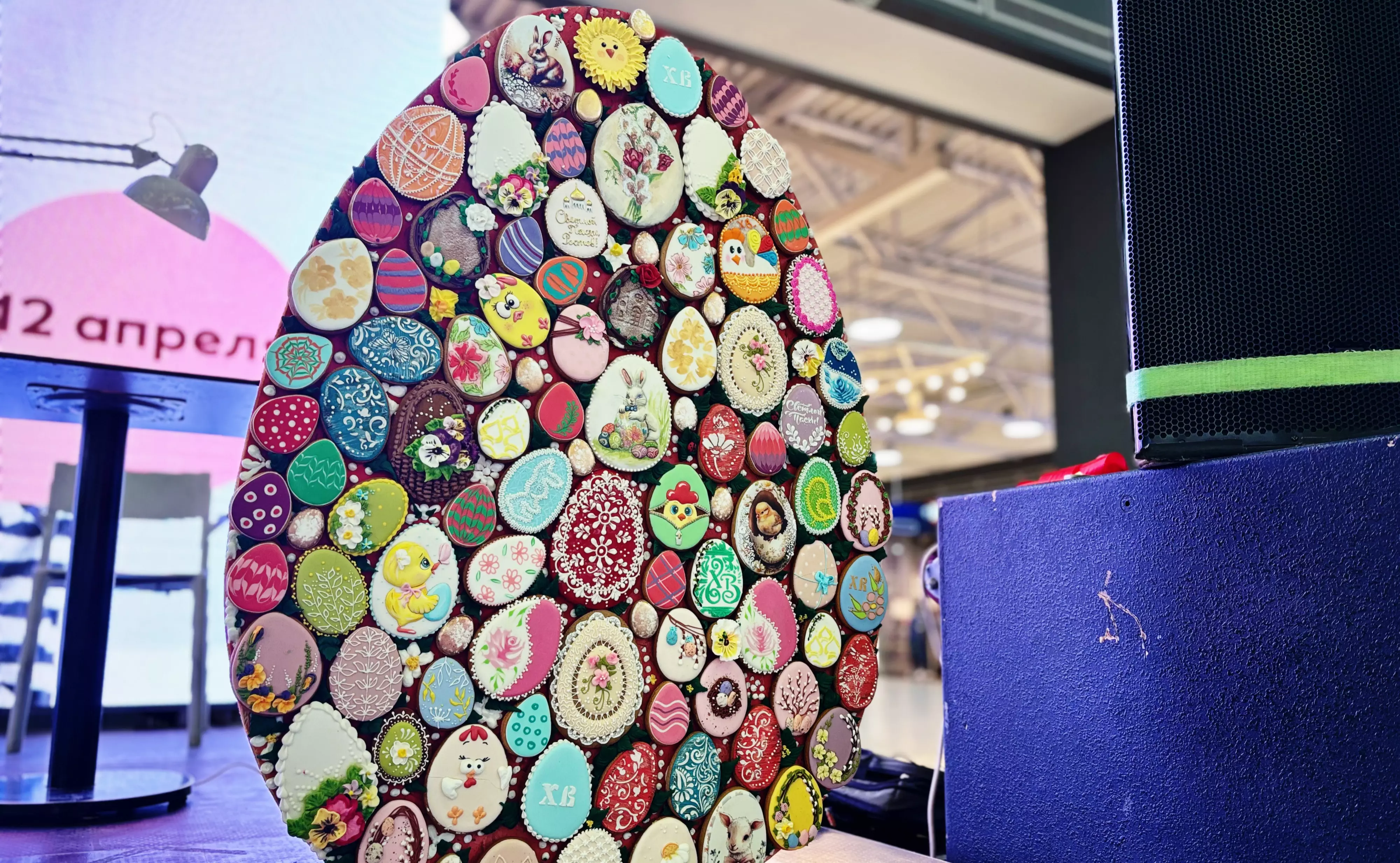 В качестве украшения фестиваля участники подготовили арт-объекты — пасхальные яйца высотой более метра, украшенные сотнями пряников.