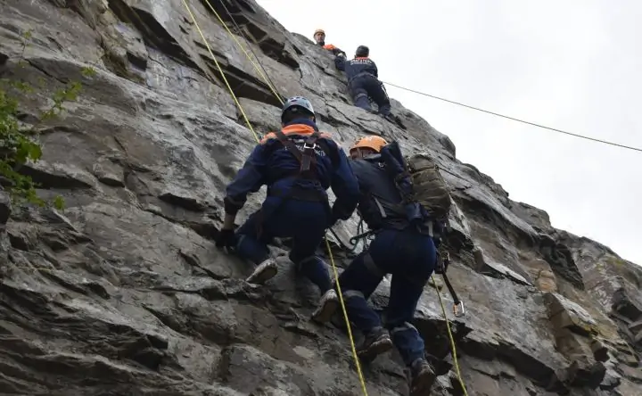 Отрабатывали спасатели и эвакуацию пострадавшего в скалистой местности. Команда спасателей поднялась по скальному рельефу свободным лазом, добралась до обессилевшего пострадавшего и с помощью спусковых устройств транспортировала его вниз.