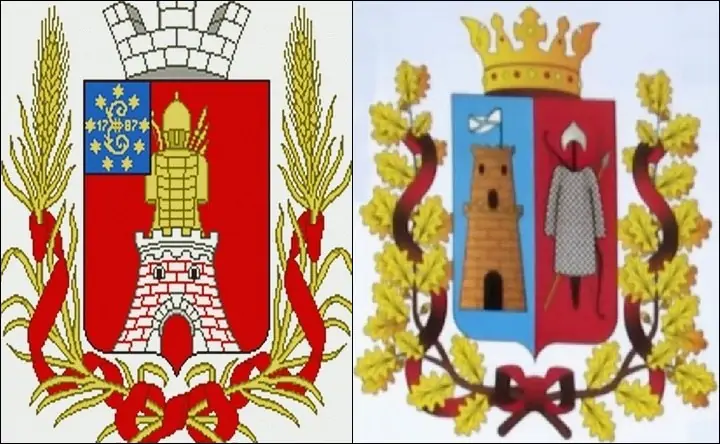 Часть шестерни в этом гербе имеет четыре зубца, а полосы, олицетворяющие Дон, должны быть белыми. Башня сохранилась как дань прошлому.