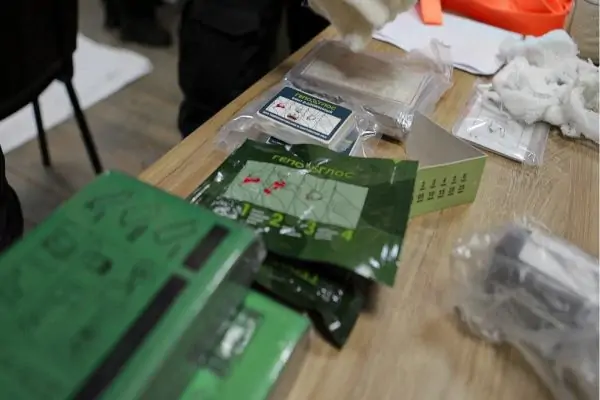 - Гемостатическое средство на выбор. Один из подходящих полностью отечественных вариантов - продукция ""Гепоглос"". Бинт ГЕПОГЛОС – это современный высокоэффективный гемостатик, чьё производство расположено в России, не имеет аналогов и обладает всеми атрибутами, соответствующими всем современным требованиям. Благодаря производству, расположенному в РФ, продукция бренда не уйдет из-за ограничений с рынка РФ, как это произошло уже с другими брендами (например, Quikclot,Celox, и др. ). Кровоостанавливающие средства ГЕПОГЛОС зарегистрированы в Республике Беларусь и в Российской Федерации. Также можно приобрести шину от этой компании, которая будет незаменима при фиксации переломов.