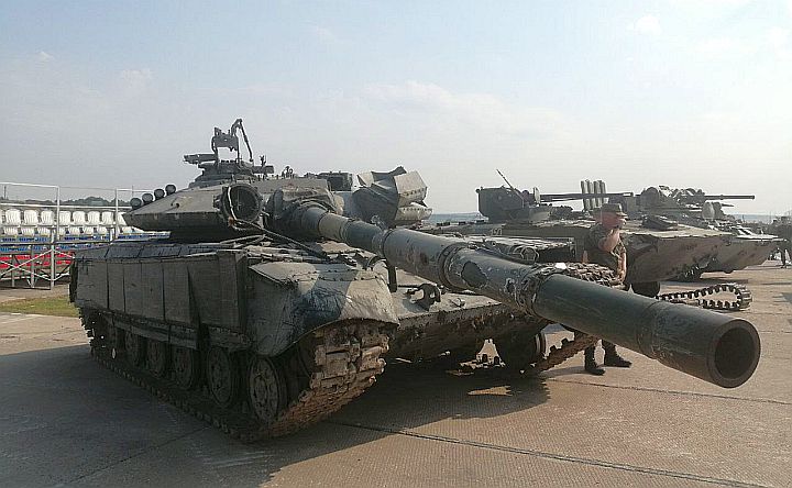 Здесь же представлены грузовой «КрАЗ», противотанковые ракетные комплексы иностранного производства, а также советский танк Т-64, гусеничная боевая машина пехоты БМП-1 и зенитная самоходная установка «Шилка».