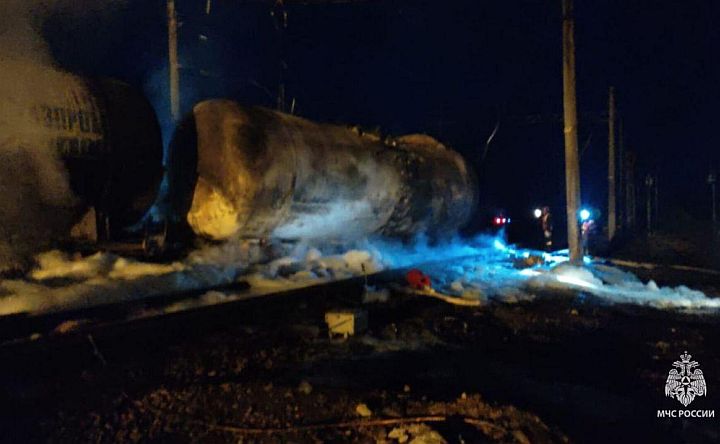 «На охлаждение цистерны были поданы два лафетных ствола, проводилась пенная атака. Маневровым поездом остальные вагоны переместили на безопасное расстояние», — сообщили в ведомстве.