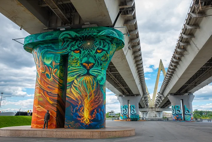 По его словам, после завершения всех 20 муралов (размер каждого составит около 100 квадратных метров) будет запущена экскурсия. Причём она будет проходить как стандартном формате, так и в диджитал. Что это означает? Экскурсовод расскажет о каждом мурале и связанной с ним легендой. При этом на каждом арт-объекте будет QR-код при переходе по которому картина будет оживать с помощью технологии дополненной реальности.