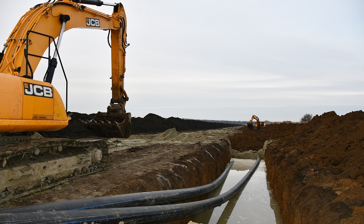В левобережной зоне Аксайского района Ростовской области продолжается строительство системы водоснабжения. По проекту предусмотрено возведение водопровода протяжённостью 53,7 километра и пяти водонасосных станций. На текущий момент, по информации подрядчиков, проложили уже 45,4 километра труб.