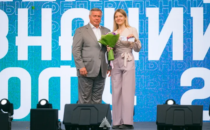 Среди поступивших в ЮФУ есть победители федеральных и региональных олимпиад. Трём таким первокурсникам — бакалавру, специалисту и магистру — студенческие билеты вручил губернатор Ростовской области Василий Голубев.