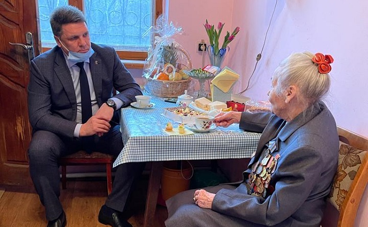 Секретарь Ленинского районного местного отделения «Единой России» Владимир Влазнев накануне 8 марта приехал в гости к участнице Великой Отечественной войны Евгении Шалай, чтобы поздравить её с наступающим женским днём.