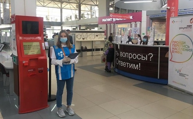 Добровольцы будут консультировать граждан по общим вопросам переписи при входе в здание МФЦ, а также предлагать переписаться людям, не дождавшимся визита переписчика, либо тем, у кого до сих пор нет регистрации на портале «Госуслуги».