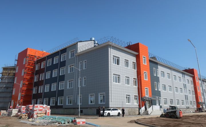 Как оказалось, строительная готовность школы составляет 89%. Чтобы уложиться в сроки контракта, на стройке в две смены работают более двухсот человек.