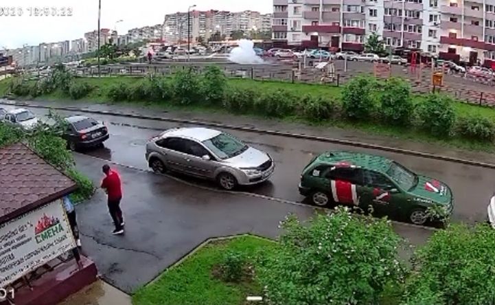 Ситуация прояснилась после просмотра видео с камер. Как оказалось, двое мужчин что-то подожгли на детской площадке, отошли в сторону, и прогремел взрыв.