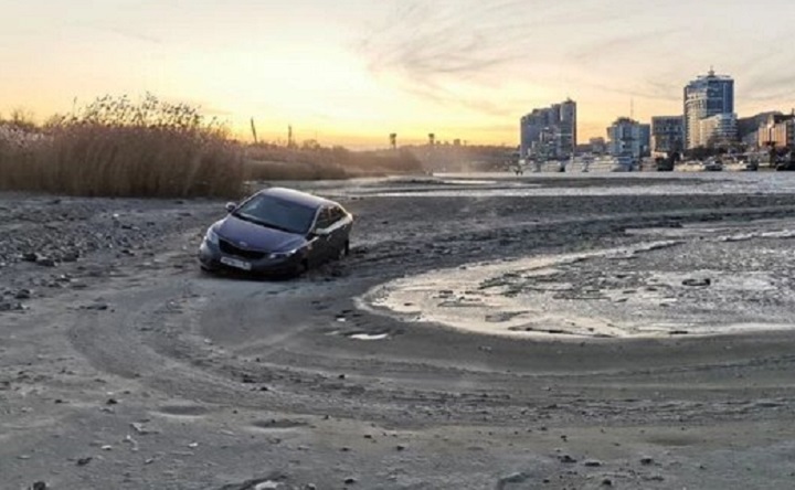 Похожий случай произошёл в Ростове. В иле и песке у Ворошиловского моста увяз автомобиль Kia Rio. Как сообщает 161.ru, водитель выехал на дно реки, обмелевшей из-за сильного ветра, 1 декабря.