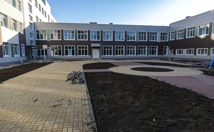 По словам заместителя главы администрации города по строительству и архитектуре Андрея Дикуна, в настоящее время в школе завершаются монтажные работы, благоустройство спортивных площадок, установка мафов, устройство фасада, а также отделочные работы на лестничных маршах и первом этаже.