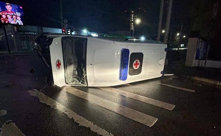 Как сообщили в отделе пропаганды регионального ГИБДД, на пересечении переулка Сальского и улицы Белорусской машина скорой, проезжая перекрёсток на красный свет с включенными проблесковыми маячками, но без звукового сигнала, столкнулась с Hyundai Solaris. После удара автомобиль скорой помощи опрокинулся на бок.