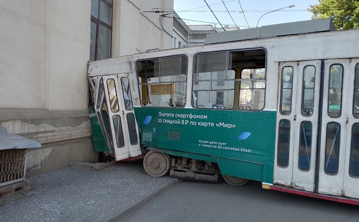 Утром в четверг, 17 августа, в Ростове трамвай сошёл с рельсов и врезался в бывший кинозал Лендворца, сообщили очевидцы в соцсетях. Пострадавших нет.