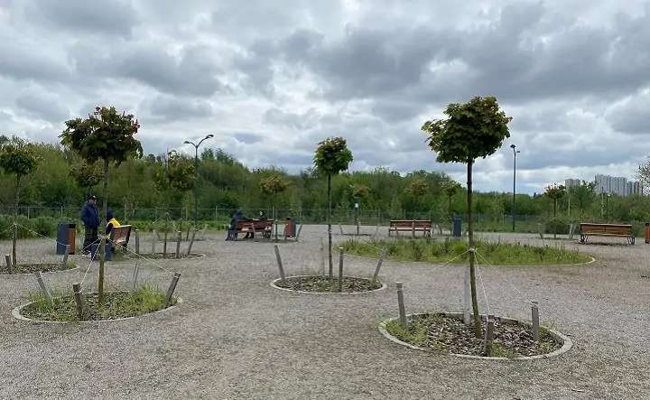 В экопарке «Первая миля» — смотровые площадки, амфитеатр, но пока дефицит деревьев