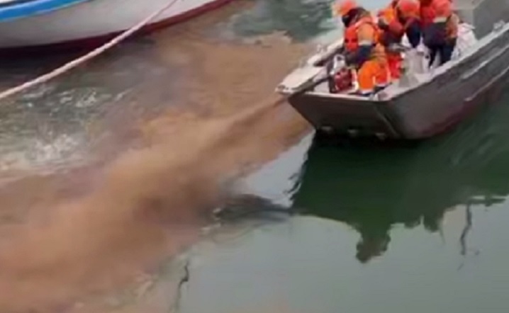 По его словам, службы порта работают на месте: обрабатывают площадь разлива сорбентом, впитывающим в себя загрязнения.