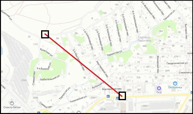 Красным отмечен новый участок дороги
