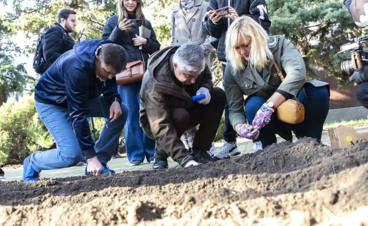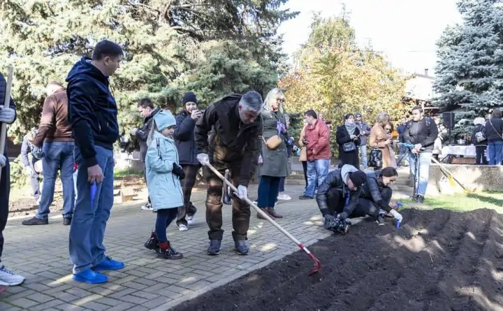 В общей сложности за день высажено около 28 тысяч луковиц различных сортов: простые ранние тюльпаны, Руби Ред, Принц Карнавал, Кристмас Марвел, Триумф, Оскар и Уайт Дрим.