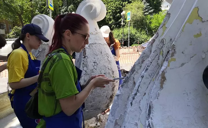В прошлом году участники фестиваля в Ростове совместными усилиями восстановили скульптурную композицию «Рыбка на волне», расположенную в глубине двора на Пушкинской,174, а в позапрошлом — отреставрировали исторический фасад дома на ул. Обороны, 64.