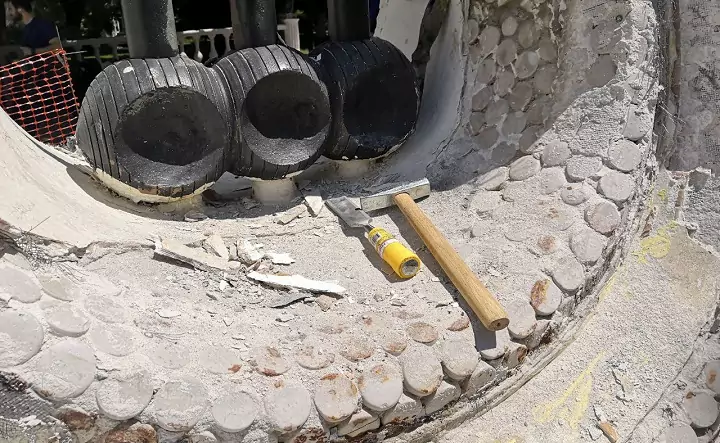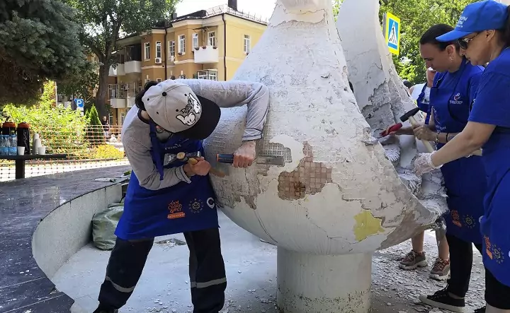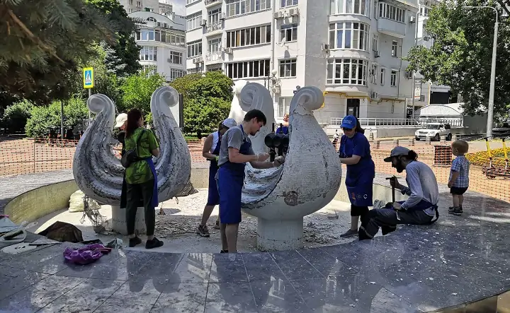 — На первый этап расчистки у нас заложено четыре дня, а затем на объекте будет работать сантехник. Он заменит вышедшие из строя форсунки и наладит водоснабжение. Это займёт около недели. Потом на объект вернутся волонтёры и продолжат расчистку. Затем мы заменим все разрушенные элементы мозаики из смальты, сделаем затирку швов эпоксидной затиркой и проведём гидрофобизацию — обработку водоотталкивающей пропиткой. Сдать полностью готовый объект планируется к 4 сентября.
