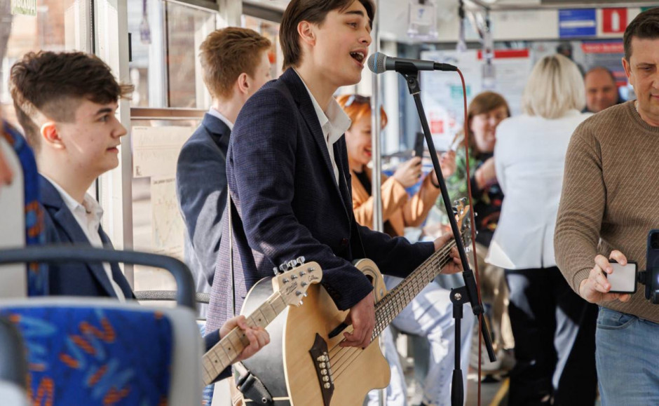 Ростов стал вторым городом в регионе, в котором запустили музыкальный трамвай. В Таганроге такой же, на базе ретровагона Tatra T3, ходит с лета 2024 года. В нём также выступает кавер-группа «Предел Роша», а проезд стоит 1300 рублей для взрослого и 1200 для ребенка.