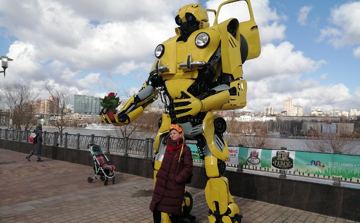 В Левобережном парке Ростова установили гигантского робота Бамблби из фильма «Трансформеры». Его высота — 3,5 метра. Арт-объект получил название «Вселенная есть в каждом из нас!». В воскресенье, 6 марта, авторы проекта торжественно открыли робота и угостили ростовчан блинами.